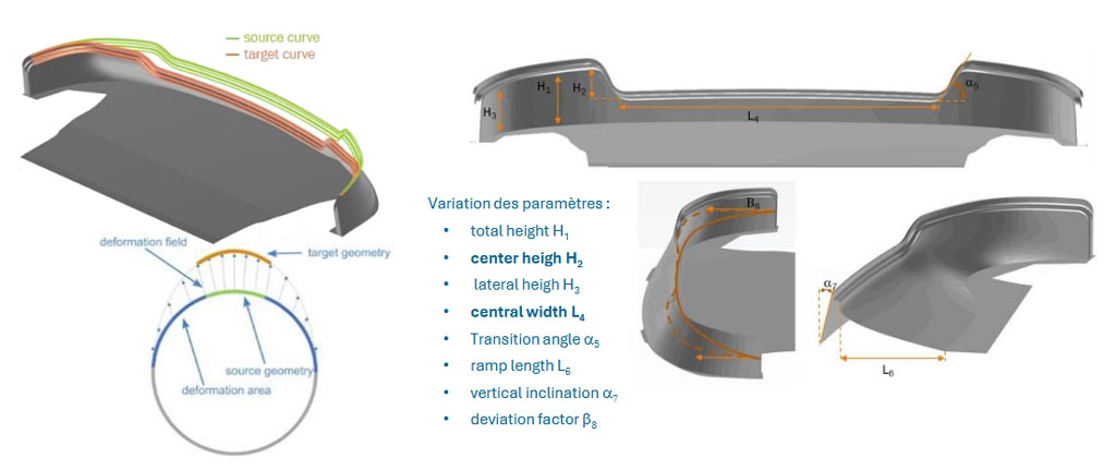 We now present the methodology used in CAESES® to modify the shape of the spoiler. The software optimizes the values of the radial basis functions, so that the target curve respects the chosen geometric parameters. This process, which is applied before each simulation, allows each new geometry to be transferred to ultraFluidX, for automatic modification of the mesh.